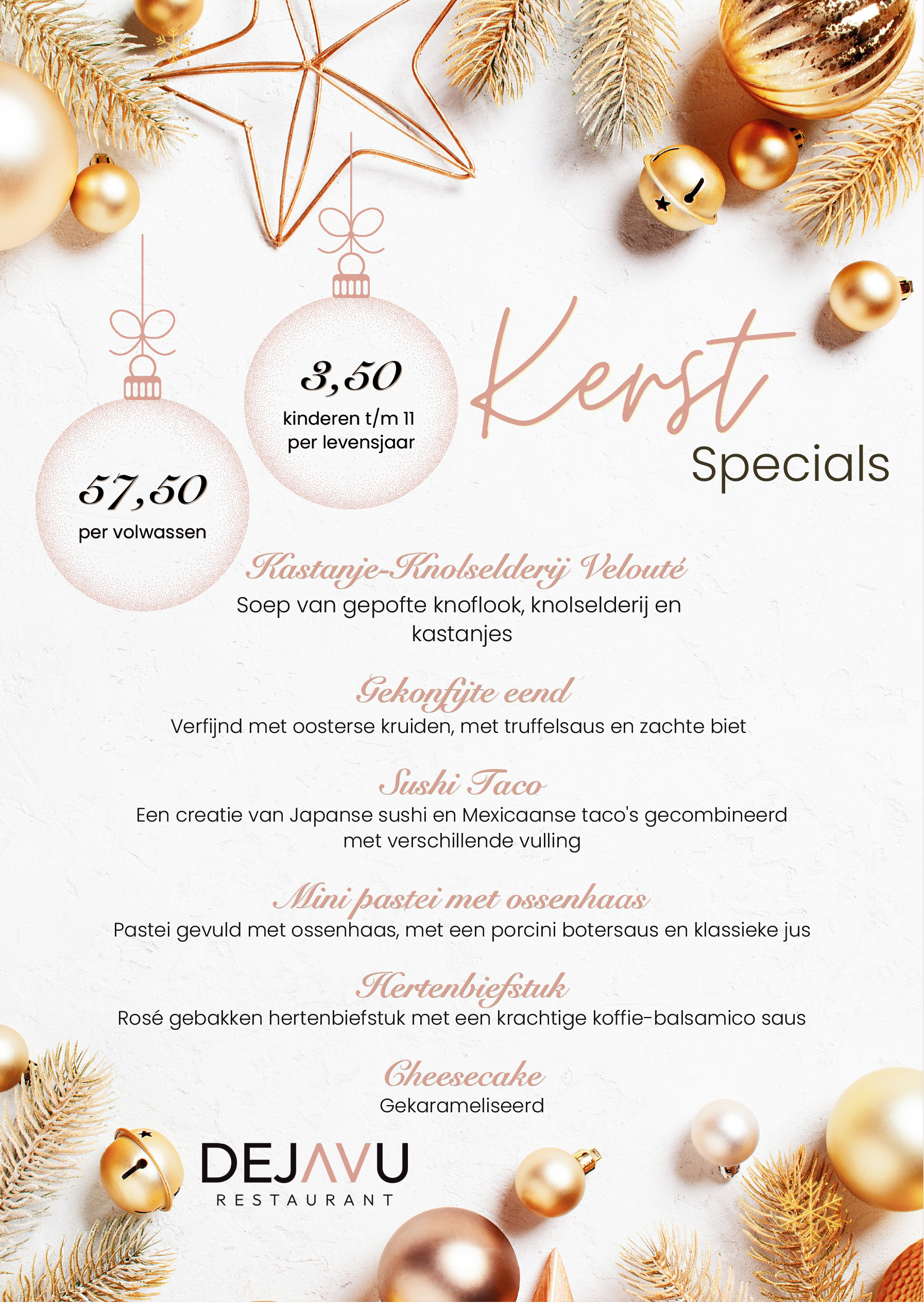 Bij Deja-Vu geniet u onbeperkt en zonder tijdslimiet. Neem plaats in ons sfeervolle restaurant en ontdek de gemoedelijke sfeer. In een warme, gezellige setting gaat u samen met uw gezelschap op culinaire ontdekkingsreis.